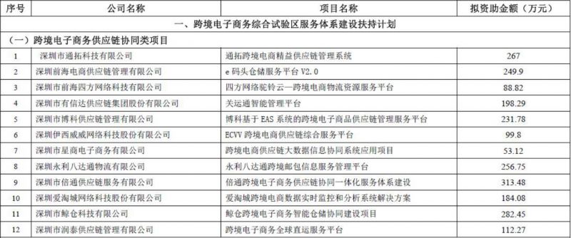 深圳跨境电子商务综合试验区服务体系建设项目,重点支持以下四大类建设内容